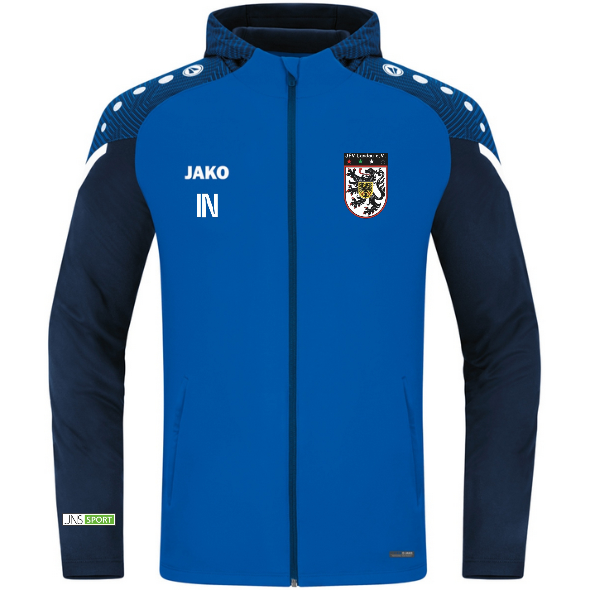 Die Highlights der JAKO Kapuzenjacke Performance sind die Design-Elemente im Schultereinsatz aus Jacquard und die Kontraststreifen. Diese Design-Elemente sind ebenfalls in der Kapuze eingearbeitet. Die Kapuzenjacke verfügt über Seitentaschen mit Reißverschluss. 100 % der eingesetzten Materialien der Jacke bestehen aus recyceltem Polyester. Durch das Polyester-Fleece besitzt der Stoff eine weiche Oberfläche, die nur sehr wenig Feuchtigkeit aufnimmt und Schweiß zuverlässig nach außen transportiert.